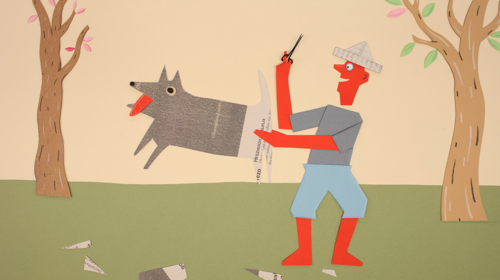 With his scissors Mister Paper cuts out the worlds he wants.